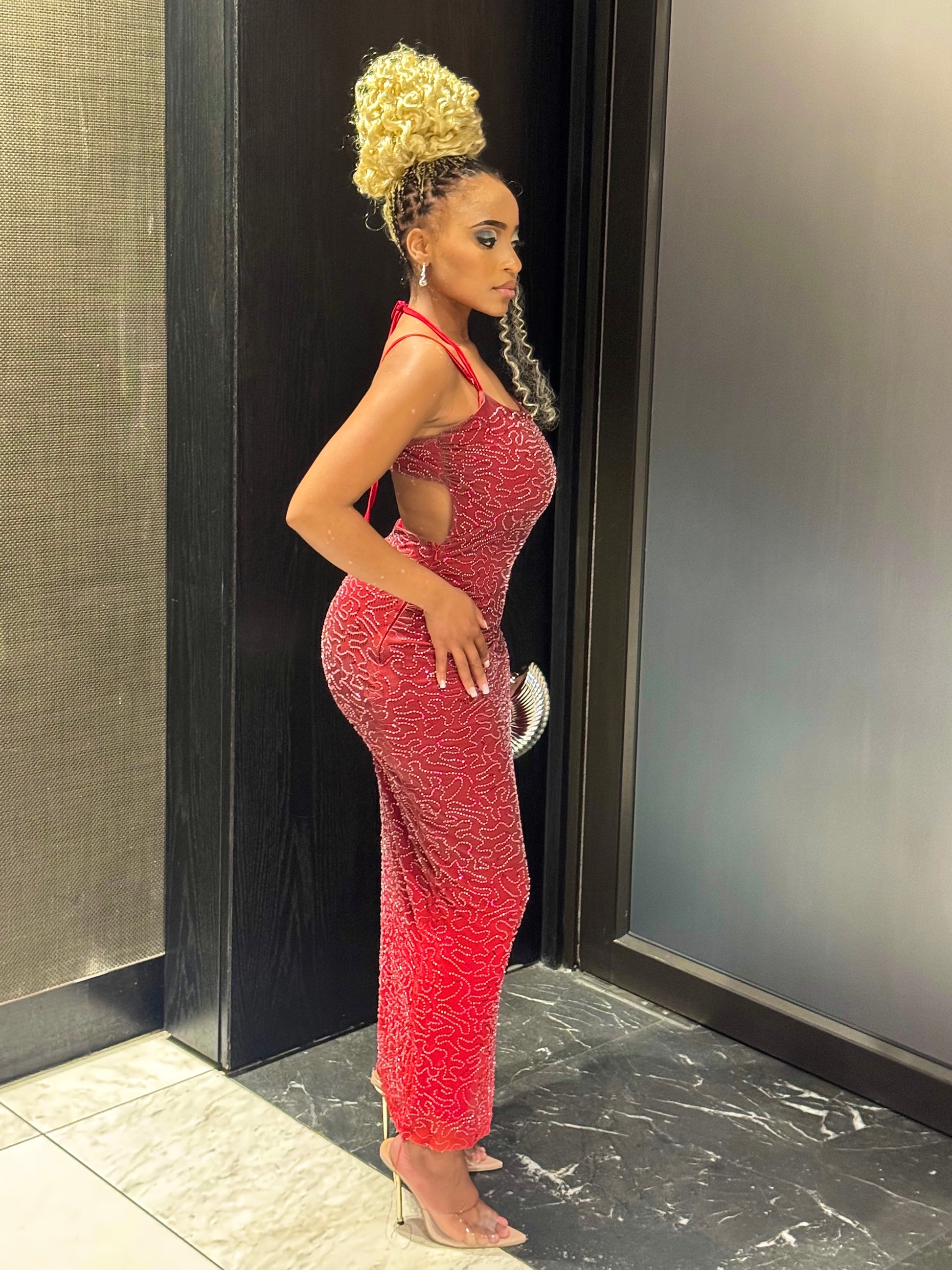 Serve sleek sophistication in the Merlot Glow Midi — a body-hugging spaghetti strap dress with a rich red ombré shimmer. Designed to flatter your curves, it’s the ultimate pick for dinner dates, cocktails, or evening events.