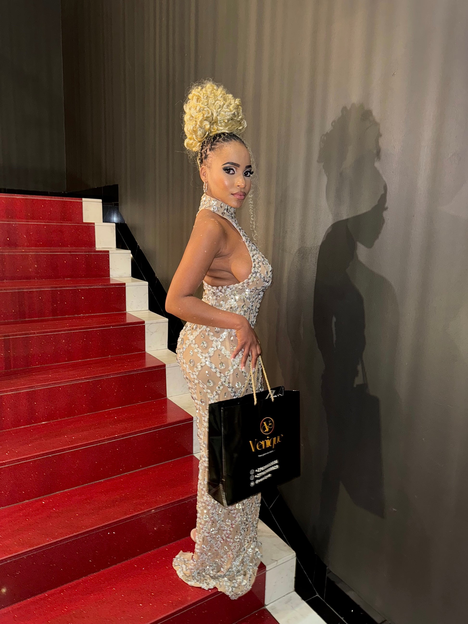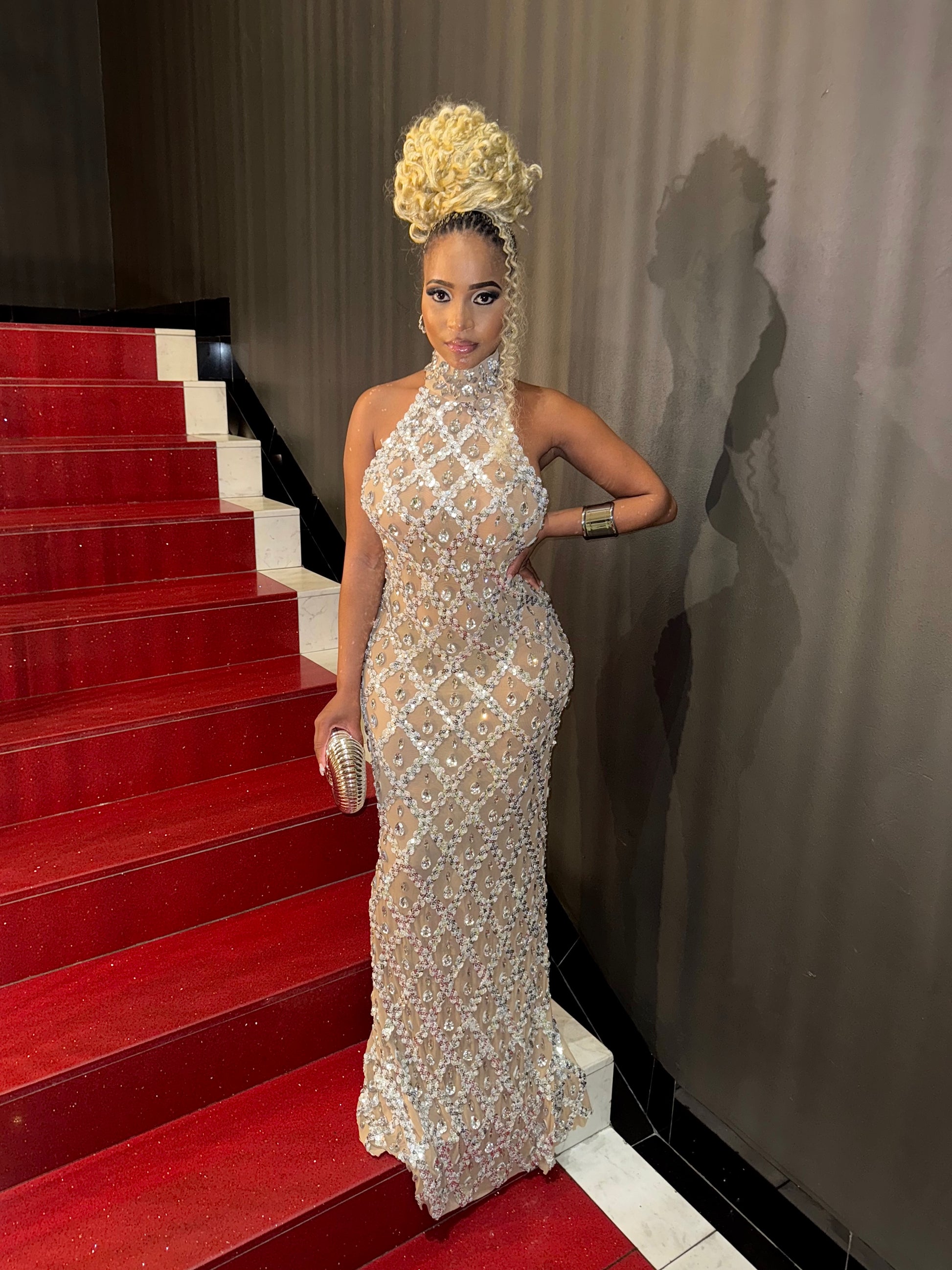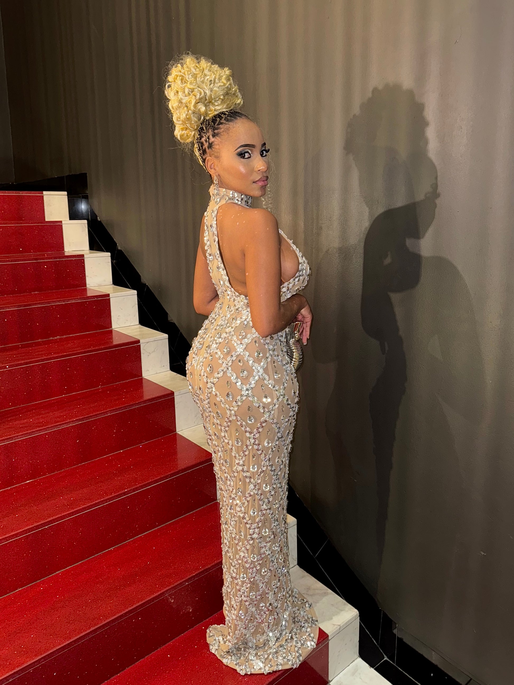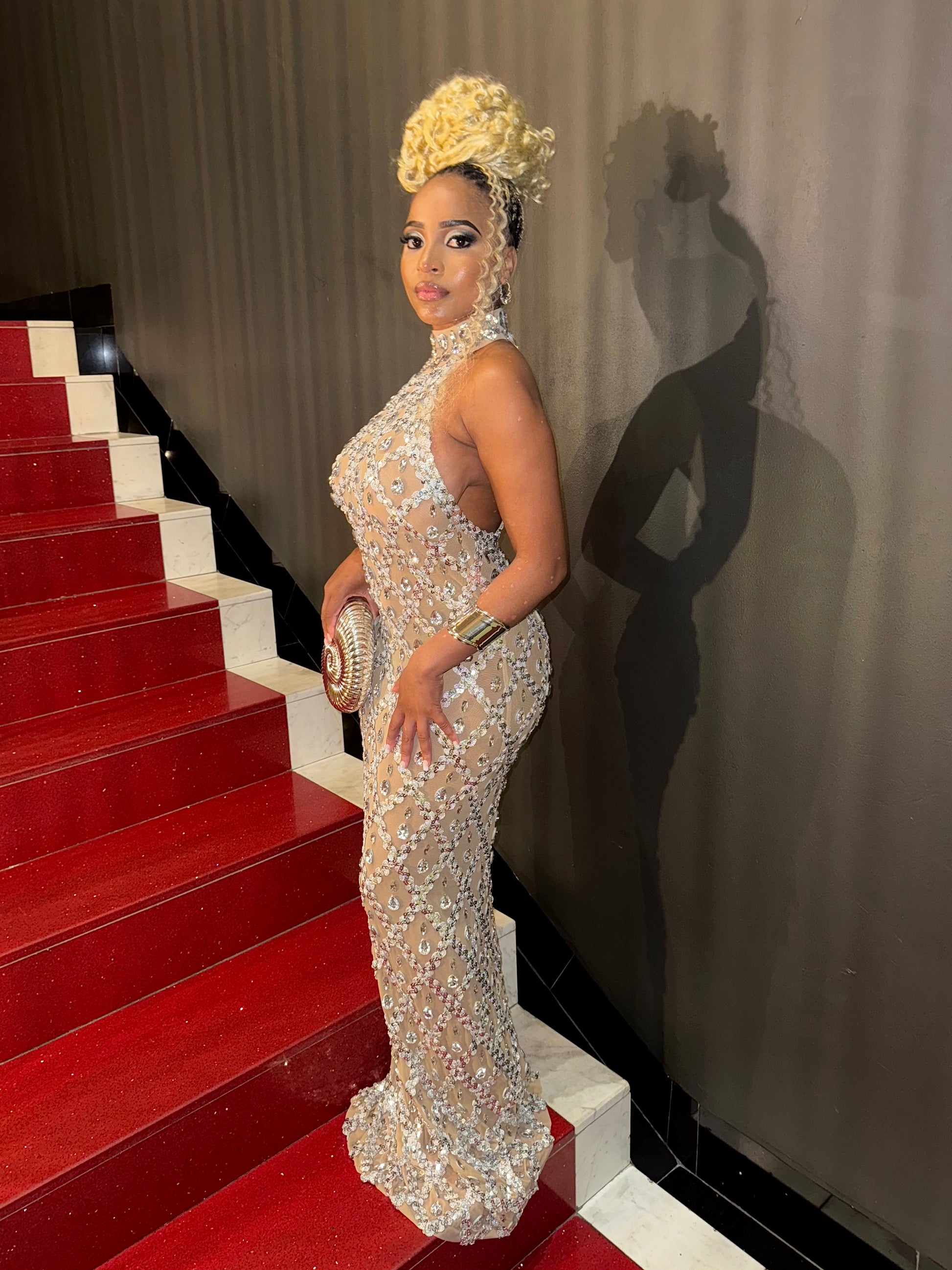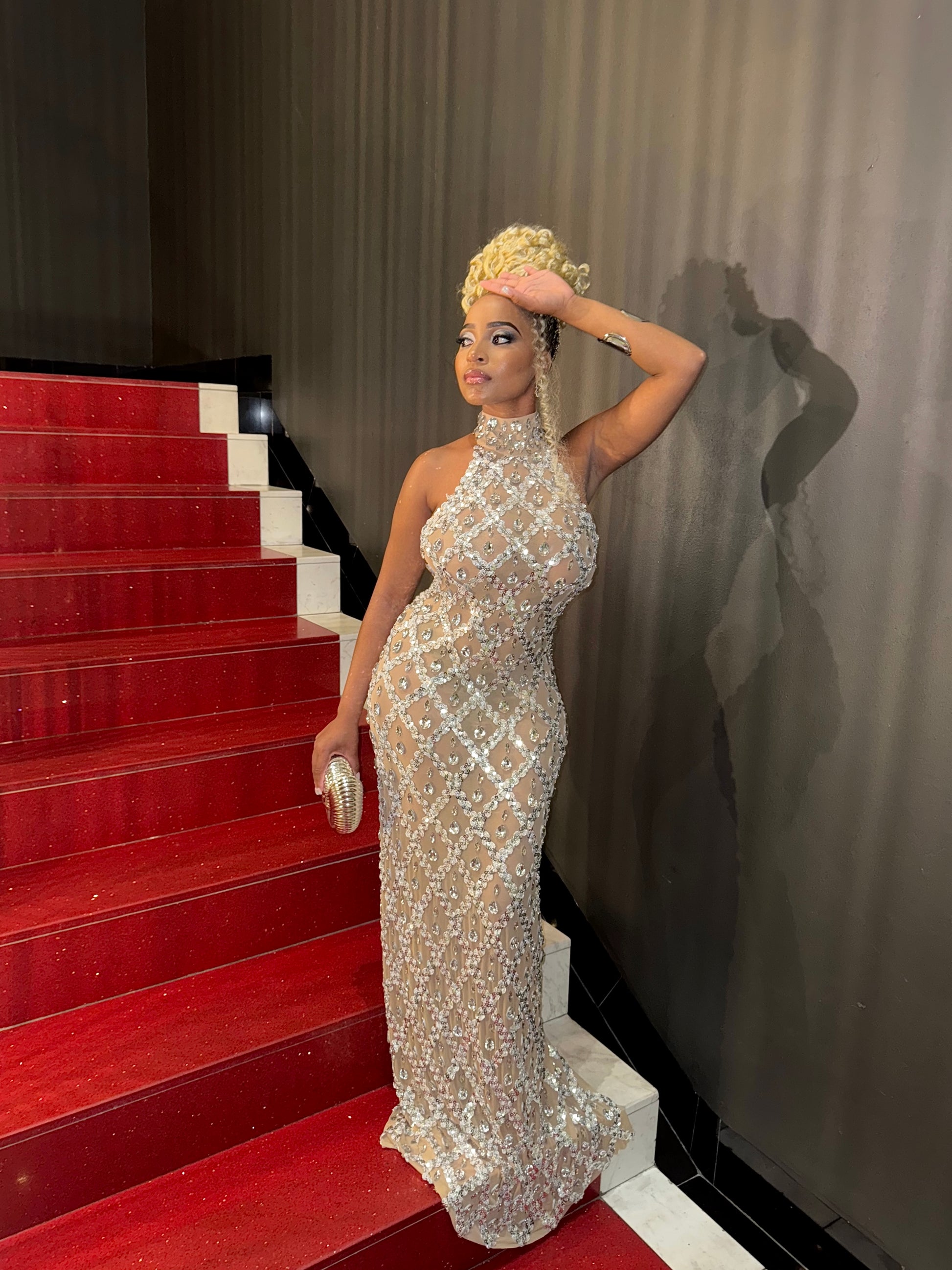 The Seraphina gown is pure elegance—crafted with a diamond crystal mesh that hugs your curves while shimmering with every step. Perfect for galas, birthdays, and glamorous nights where all eyes should be on you.