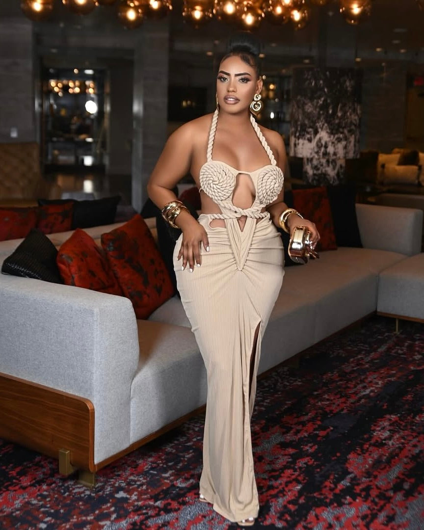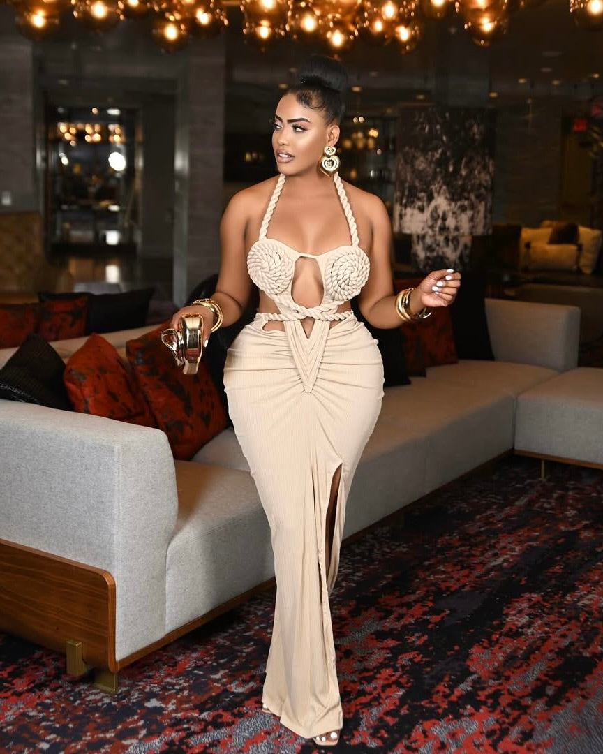 Fierce and unforgettable — the Zahra Braided Gown features a statement braided halter neckline, daring cutouts, and a sleek floor-length silhouette with a thigh-high slit. Designed for the modern goddess, it’s the ultimate look for luxury evenings, red-carpet moments, or high-profile celebrations.